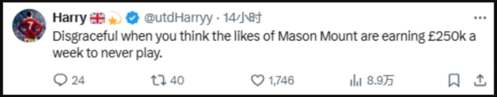 “当你想到芒特每周拿25万镑,还不用上场,简直可耻。”