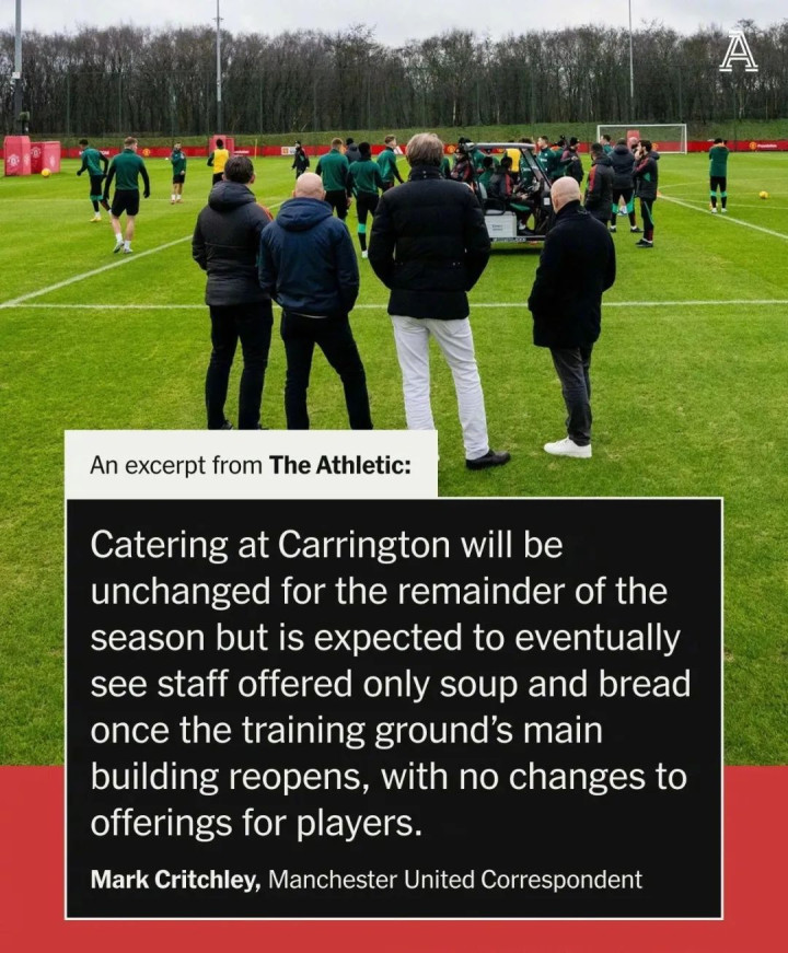与此同时,曼联还取消了员工免费午餐供应。TA报道,俱乐部消息人士称通过停止为员工提供免费午餐,预计每年节省约100万英镑。不过,这还不够发卡塞米罗的三周工资……