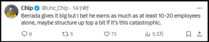 “贝拉达说得高高在上,但他一个人收入至少相当于10-20名员工,如果曼联情况如此灾难,也许调整高层会更好一些。”